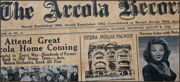 During the week of June 20-24, 2012, over 130 artists from across the United States as well as Canada, New Zealand, Scotland and Australia descended upon Arcola, leaving behind 15 historic murals. Known as the Walldogs, the loose affiliation of sign painters, graphic artists, and other talented individuals reunite annually to entertain and transform a community with their special brand of artistic interpretation, entertainment, and friendship.